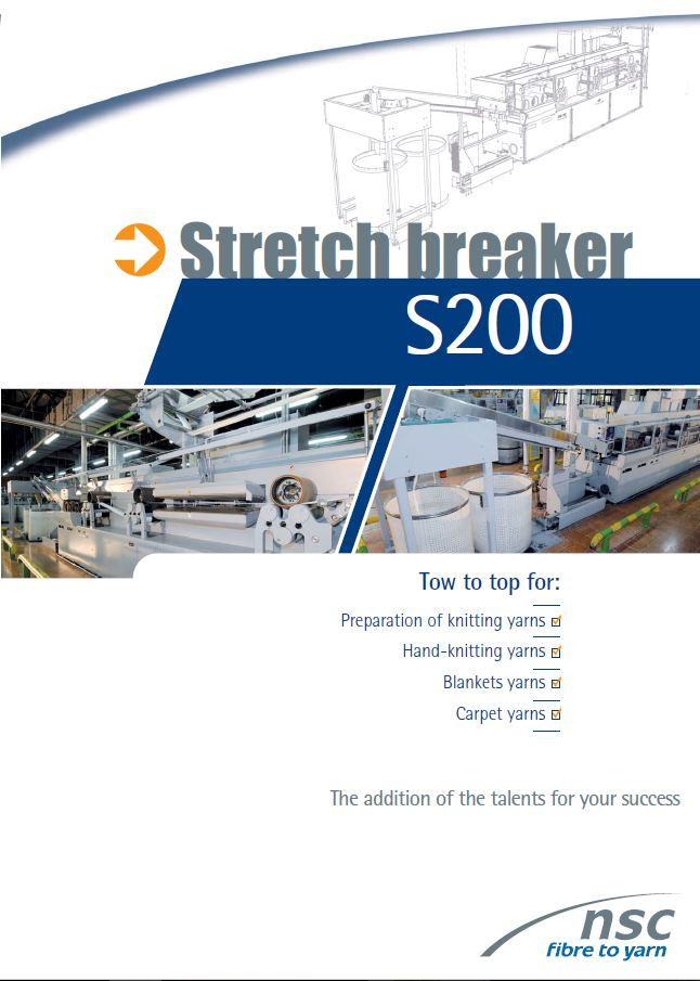 NSC firmasının Tow-To-Top hatlarında, S200 koparma makinası elyaf towunun yün tipi diagrama sahip olan uzun elyaflı bantlara dönüştürür. Bu bantlar el örgü, triko, battaniye ve halı ipliklerinin üretiminde kullanılır. Başlıca kullanılan malzemeler: Akrilik (PAN), Spresifik poliester (PES), Polipropilen (PP) ve Vizkoz (CV).